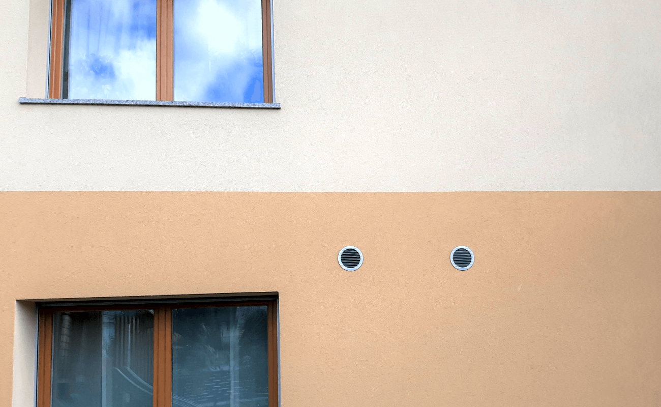 Dve odprtini v steni, kjer se nahajata cevna ventilatorja, sta v celoti prekriti z izmenjalcem toplote, zato deluje sistem zelo tiho, brez toplotnih mostov in morebitnega hrupa od zunaj.